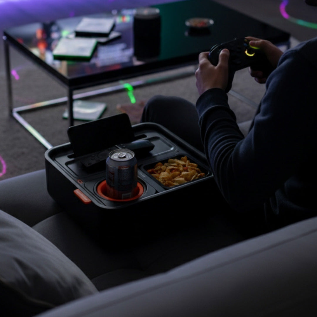 Gaming from the couch gets cluttered fast. Extra controller. Charging cables. Snacks. Remote.