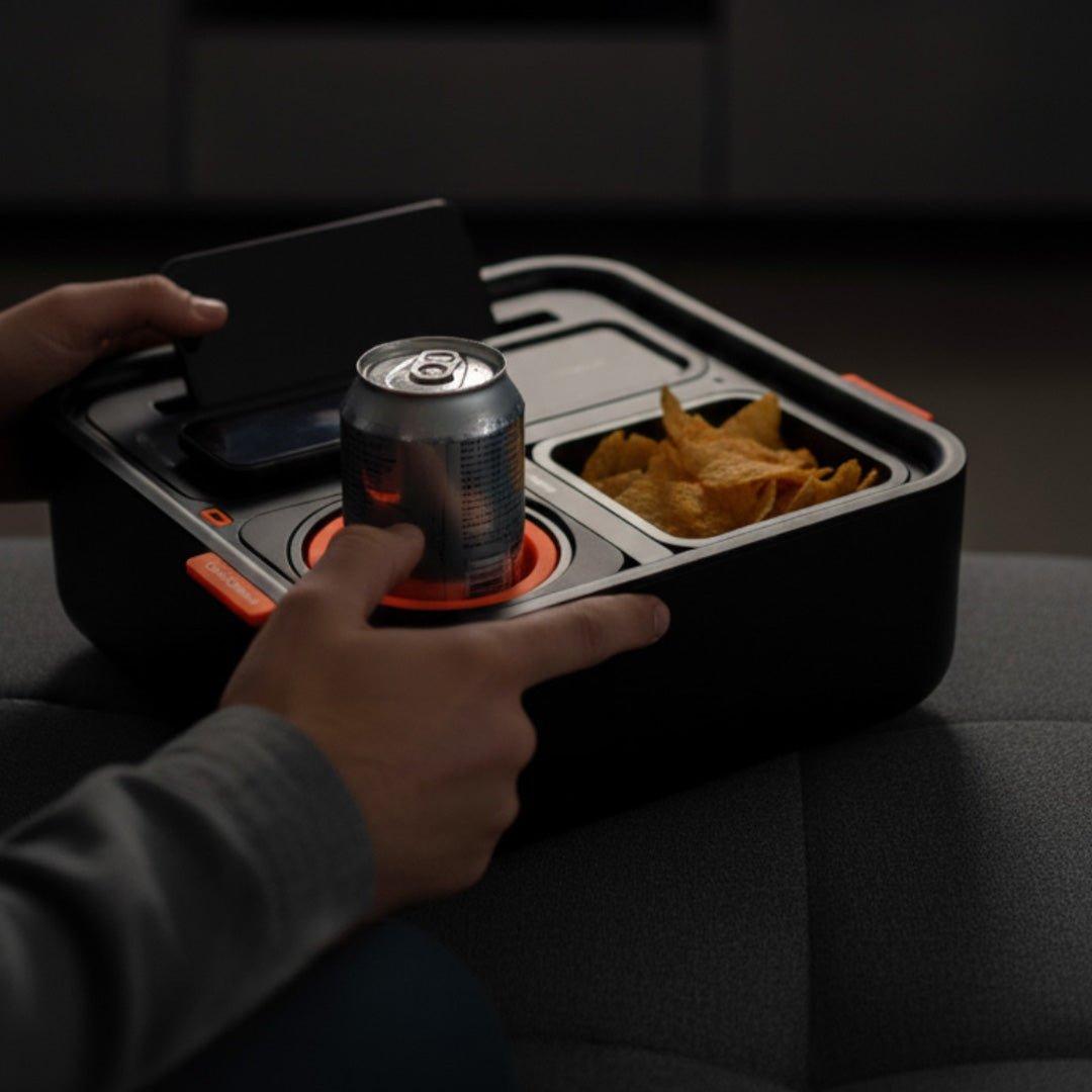 Console gaming from the couch gets messy fast. Drinks tip over during intense moments. Controllers get lost in cushions. Snacks spill everywhere. CouchConsole keeps everything stable, organized, and within arm's reach during long sessions.